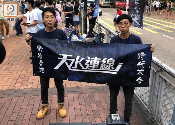 港版國安法:港區國安法:天水連線橫額現「光復香港」字句 警稱涉違國安法 在 7月 04, 2020 取得連結 Facebook X Pinterest 電子郵件 其他應用程式 天水連線成員展示寫有「光復香港 時代革命」的橫額。(何子輝攝)天水連線葵涌街站掛橫額,警指涉違《港區國安法》。今日(3日)下午5時許,組織天水連線在葵 ...來源 source: http://hk.on.cc