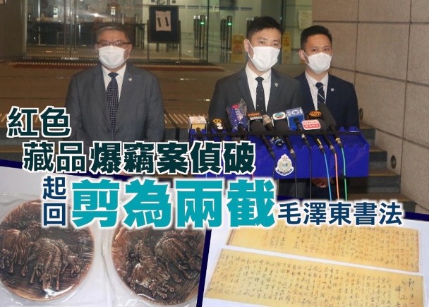 20200916 油麻地紅色收藏家單位遇竊:紅色收藏家符春曉失竊50億元藏品 警拘3男子追緝2人 在 10月 07, 2020 取得連結 Facebook X Pinterest 電子郵件 其他應用程式 警方偵破符春曉50億元失竊案,起回2.83米長的毛澤東親筆書法等藏品。(余宏基攝)紅色收藏家符春曉位於油麻地彌敦道512號一幢商住大廈的單位,上月10 ...來源 source: http://hk.on.cc