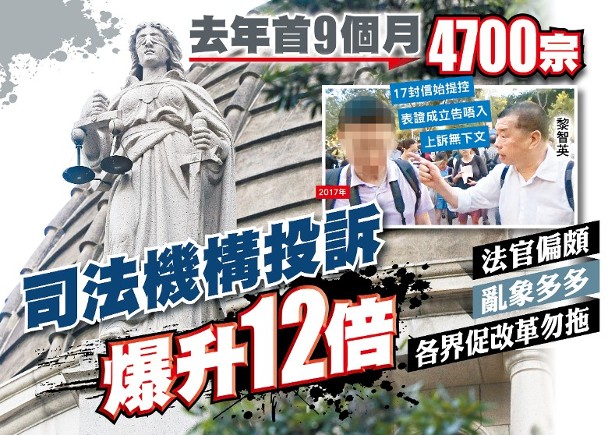 A1:去年首9個月4700宗 司法機構投訴爆升12倍 在 1月 12, 2021 取得連結 Facebook X Pinterest 電子郵件 其他應用程式 近年司法亂象頻生,市民對法治失去信心。司法機構年報顯示截至去年9月30日,已處理了4,700宗投訴,有關投訴數字較前年激增12倍,雖然當中逾九成屬針對 ...來源 source: http://hk.on.cc